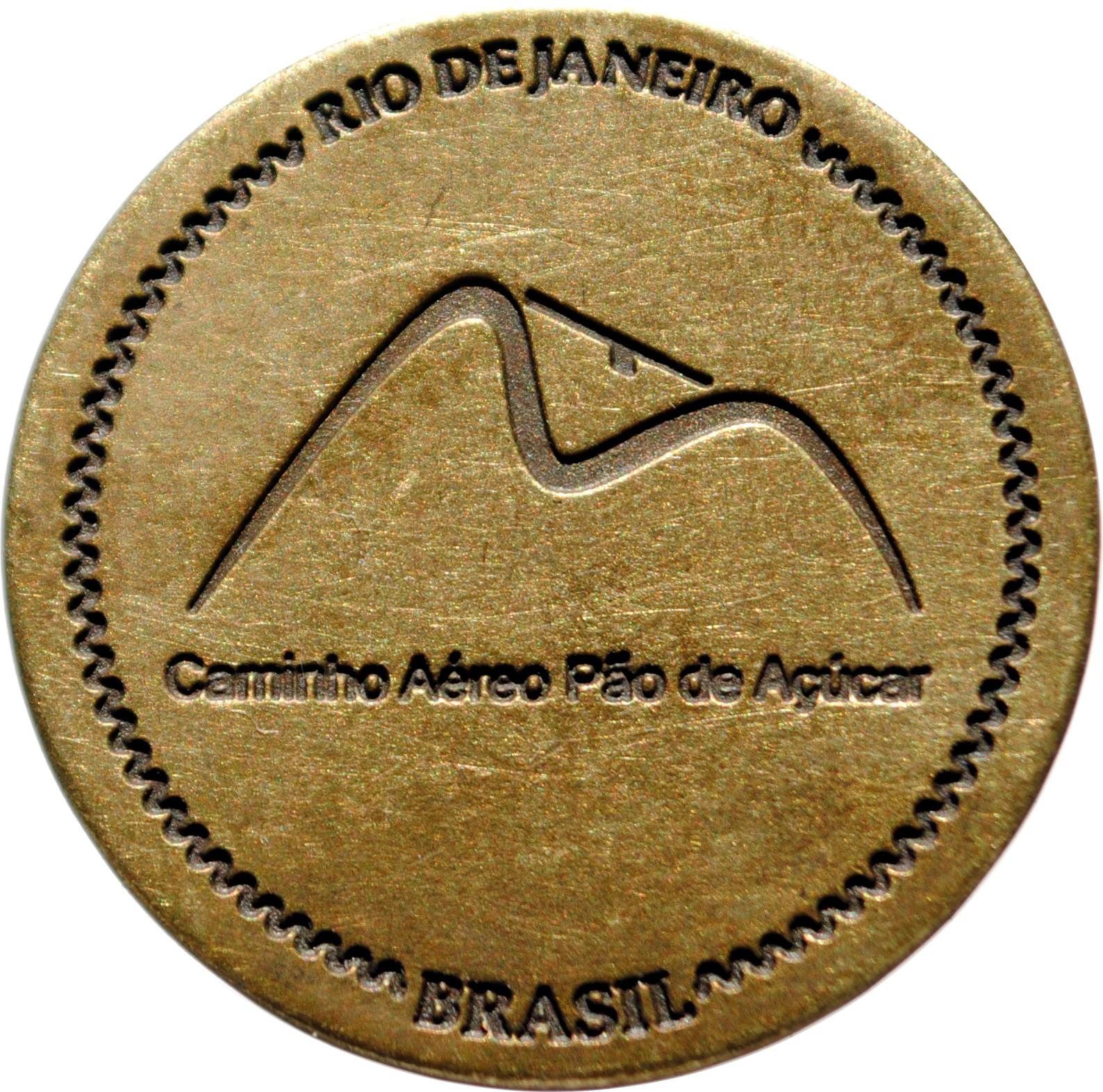 Опис: На монеті зображено гору Цукрова Голова та гору Морро-да-Урка з канаткою, у верхній частині монети напис «RIO DE JANIERO», а в нижній — «BRAZIL».