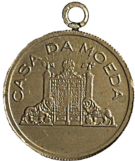 Опис: Напис у формі півкола, що протилежний верхній половині облямівки, зі словами CASA DA MOEDA.