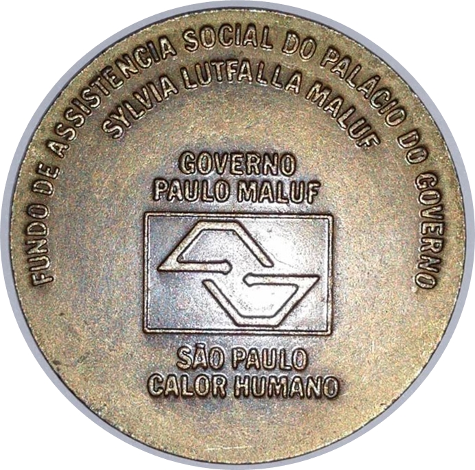 У центрі — логотип уряду Сан-Паулу (в ефоці), над яким розміщений текст: GOVERNO PAULO MALUF, а над ним — текст: SÃO PAULO CALOR HUMANO.