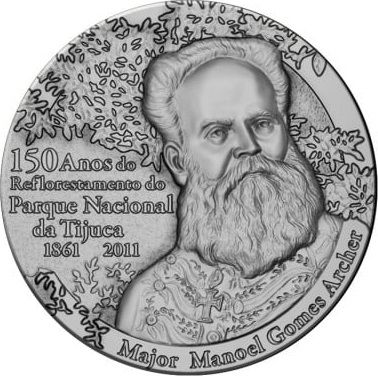 Опис: Праворуч — портрет майора Мануеля Арчера, зверненого вправо. Ліворуч — назва події та дати у п’яти рядках. На тлі — листя. У півколі зверху — ім’я персонажа.