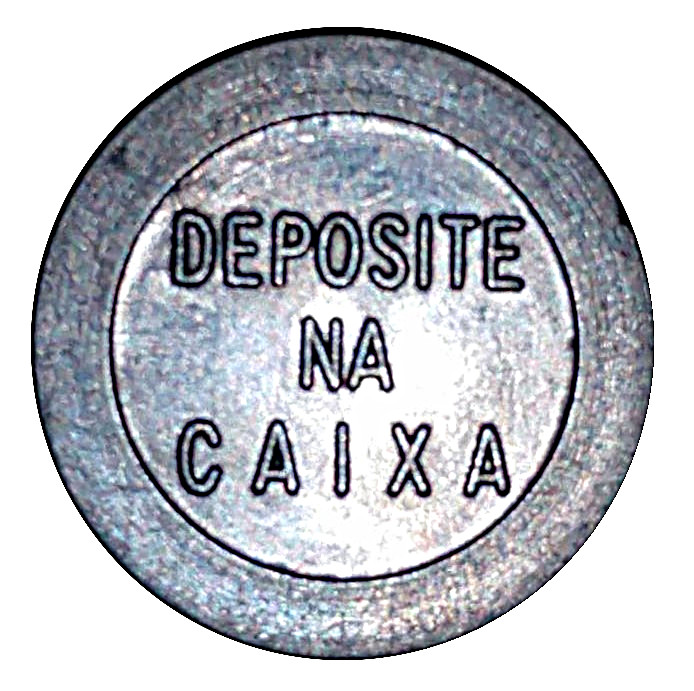 Опис: Суцільне коло, що містить у центрі фразу, яка читається зверху вниз, зі словами DEPOSITE NA CAIXA.