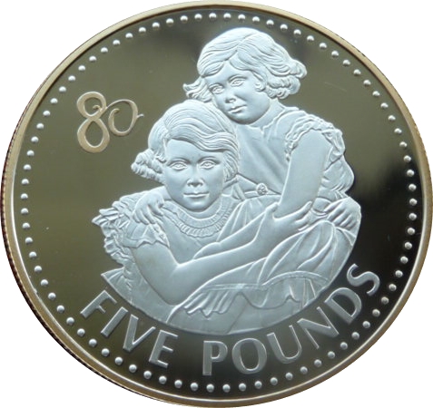 5 фунтів — Єлизавета II (принцеси Єлизавета та Маргарет) 2006 – 2006 Олдерні