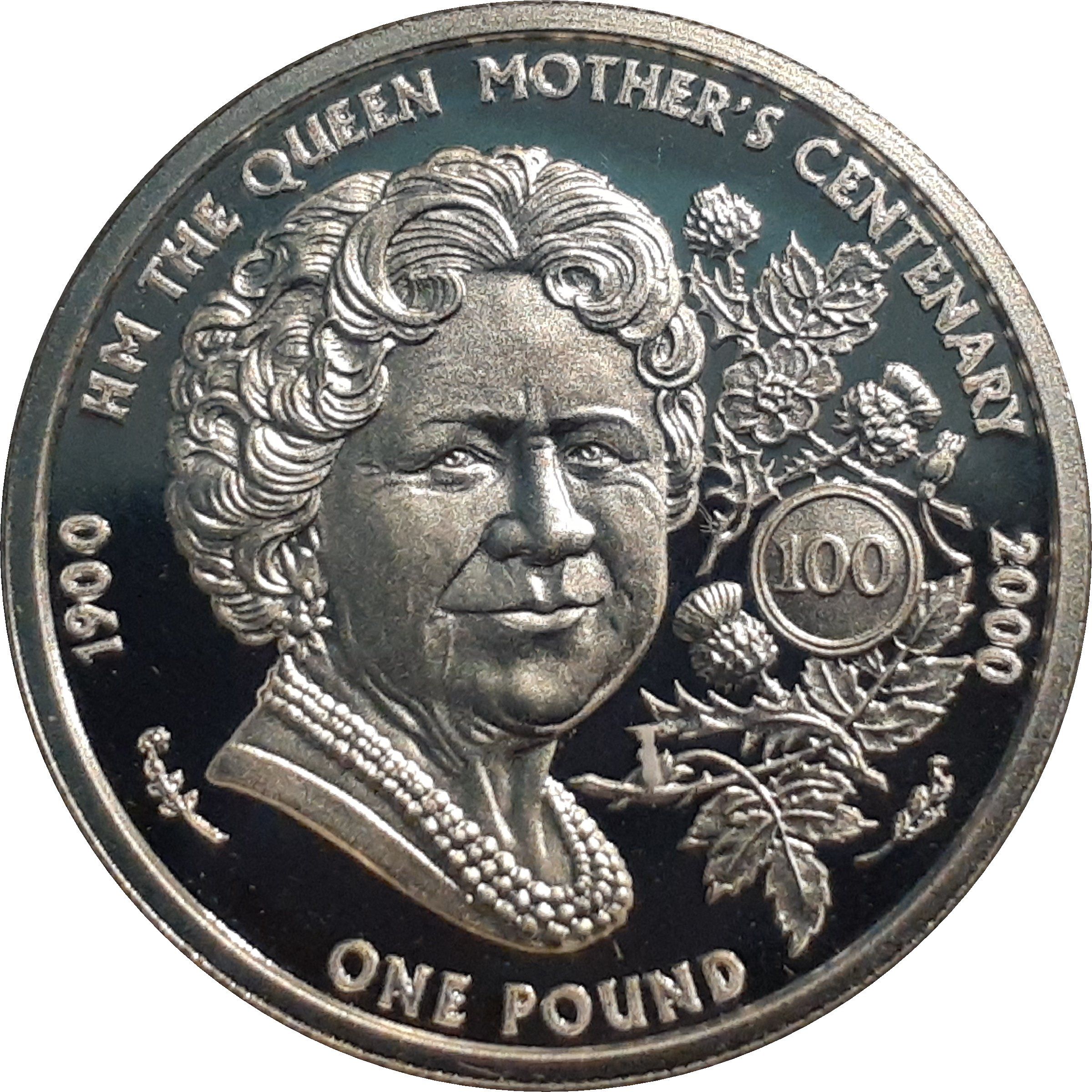 1 фунт — Єлизавета II (100-річчя королеви-матері — срібло) 2000 – 2000 Гернсі