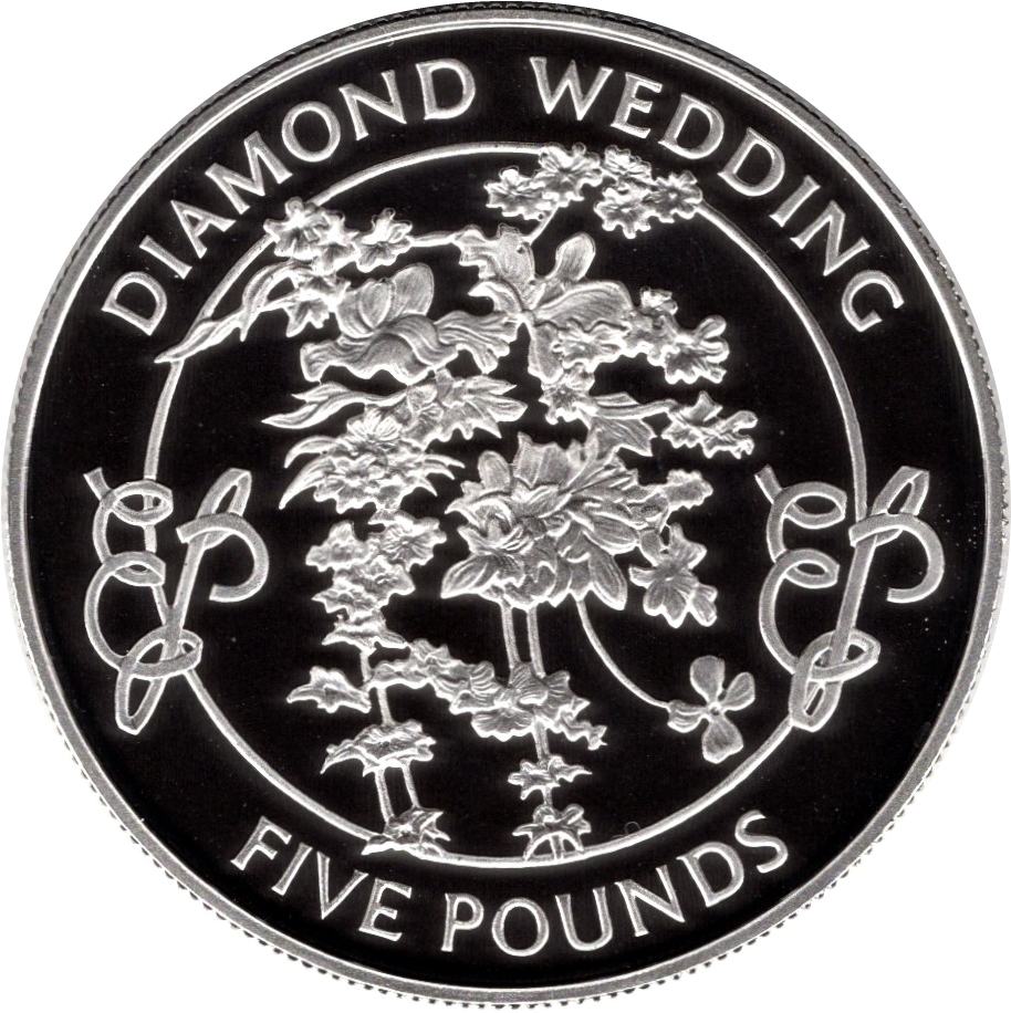 Назва: 5 фунтів — Єлизавета II (діамантове весілля; срібна проба)
