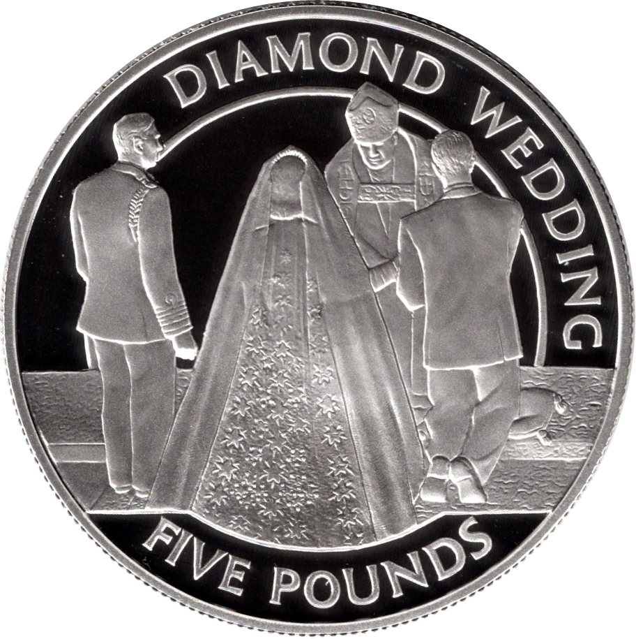 Назва: 5 фунтів — Єлизавета II (діамантове весілля; срібна проба)