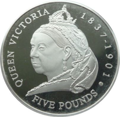 5 фунтів — Єлизавета II (сторіччя королеви Вікторії — срібло) 2001 – 2001 Гернсі