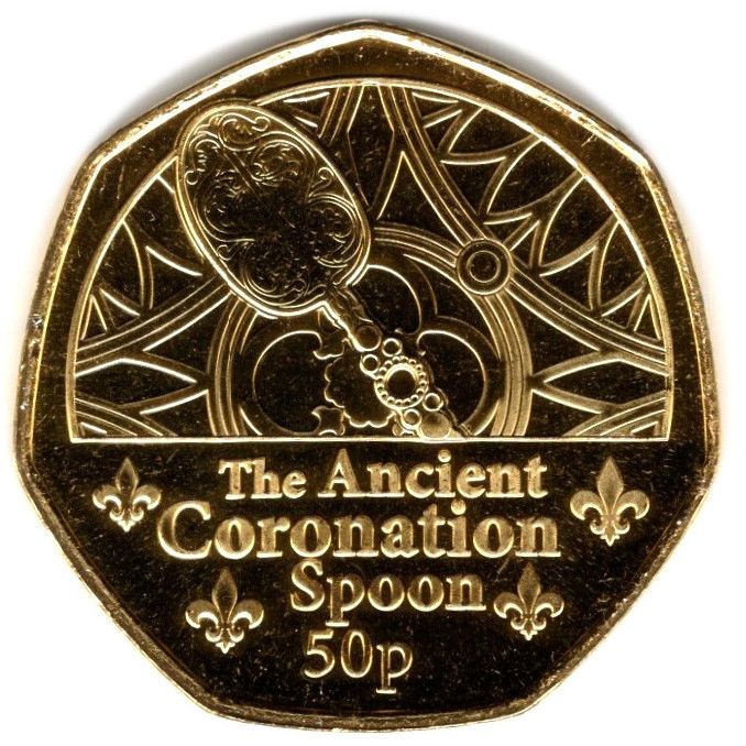 Назва: 50 пенсів — Карл III (коронаційні регалії — старовинна коронаційна ложка; позолочена)