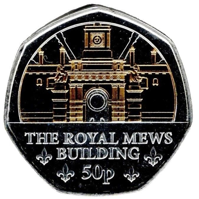 50 пенсів — Карл III (Королівські конюшні — будівля; срібло/позолота) 2024 – 2024 Гернсі