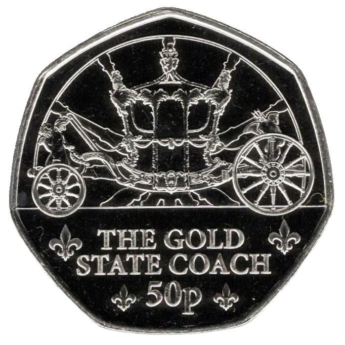 Назва: 50 пенсів — Карл III (Королівські стайні — Золота державна карета)