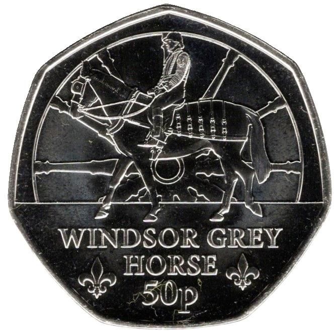 Назва: 50 пенсів — Карл III (Королівські конюшні — Сірий кінь Віндзора)