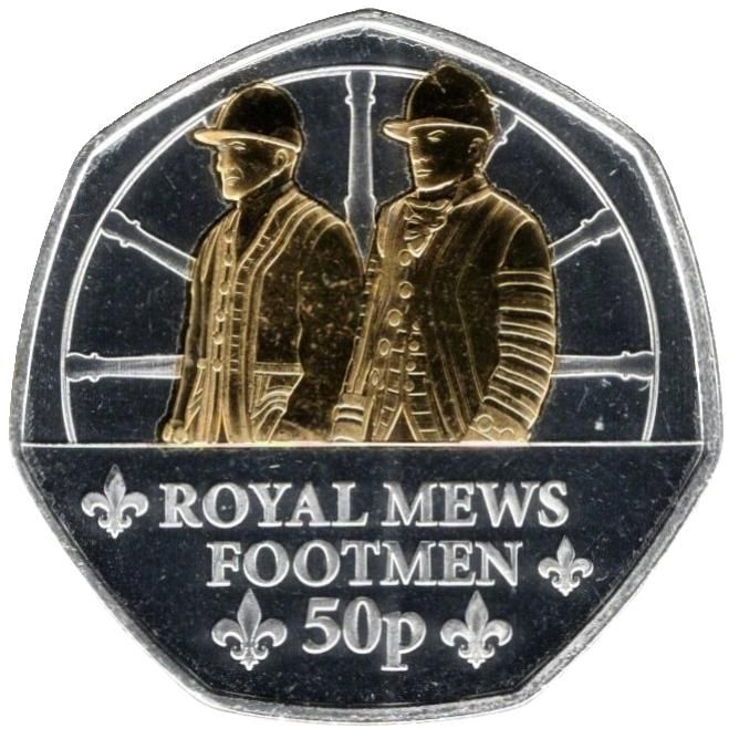 Назва: 50 пенсів — Карл III (Королівські конюшні — Йомен гвардії; срібло/позолота)