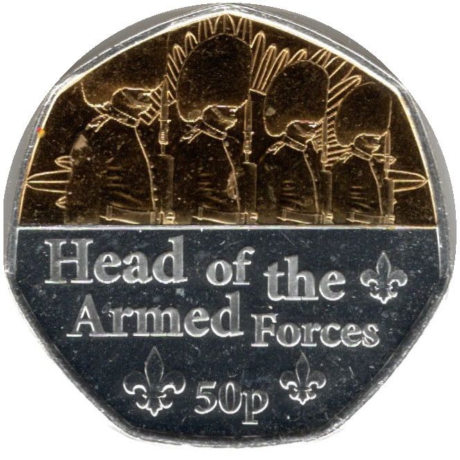 Назва: 50 пенсів — Єлизавета II (голова збройних сил; срібло та позолота)
