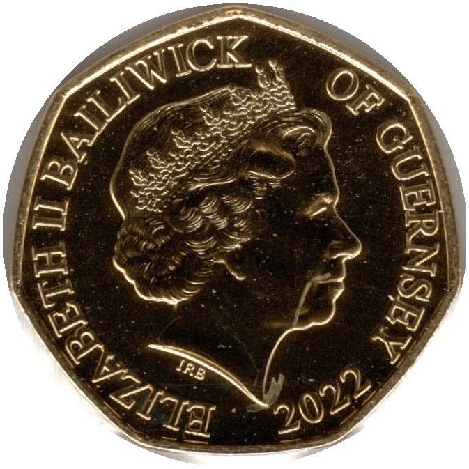 50 пенсів — Єлизавета II (головний монарх Сполученого Королівства; позолочена) 2022 – 2022 Гернсі