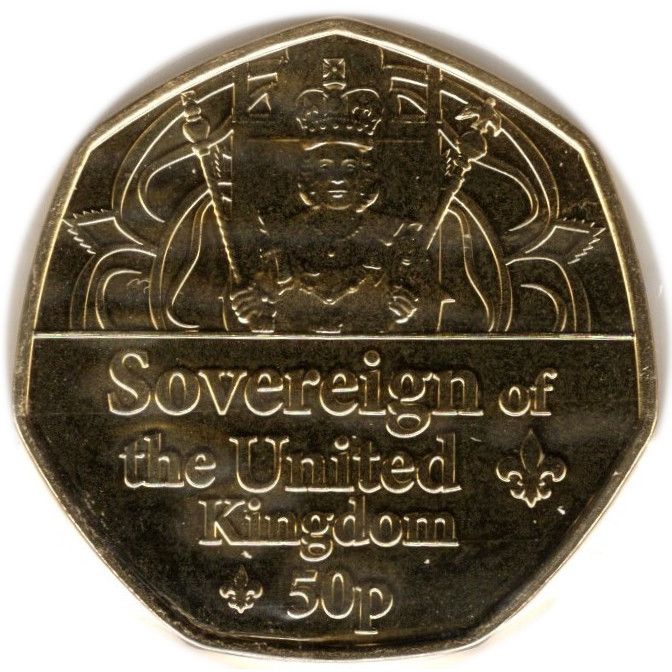 Назва: 50 пенсів — Єлизавета II (головний монарх Сполученого Королівства; позолочена)