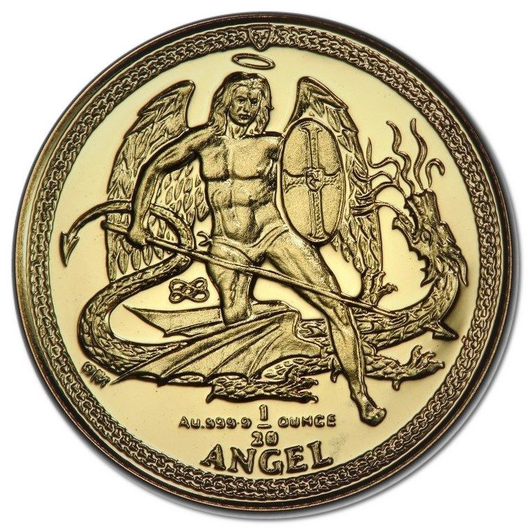 1⁄20 Ангел — Єлизавета II (Архангел Михаїл, звернений праворуч — перероблений дизайн) 2008 – 2016 Острів Мен