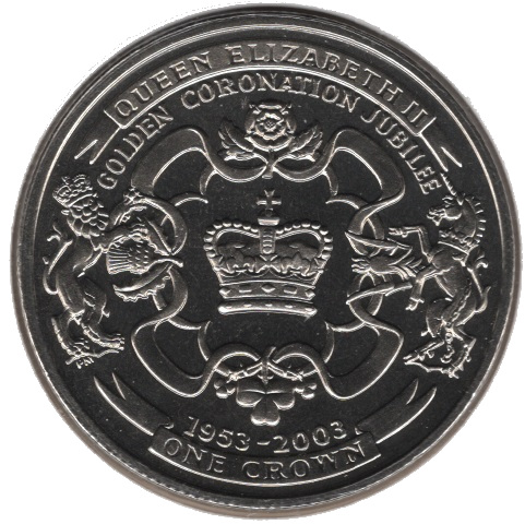 1 крона — Єлизавета II (Золотий ювілей коронації) 2003 – 2003 Острів Мен