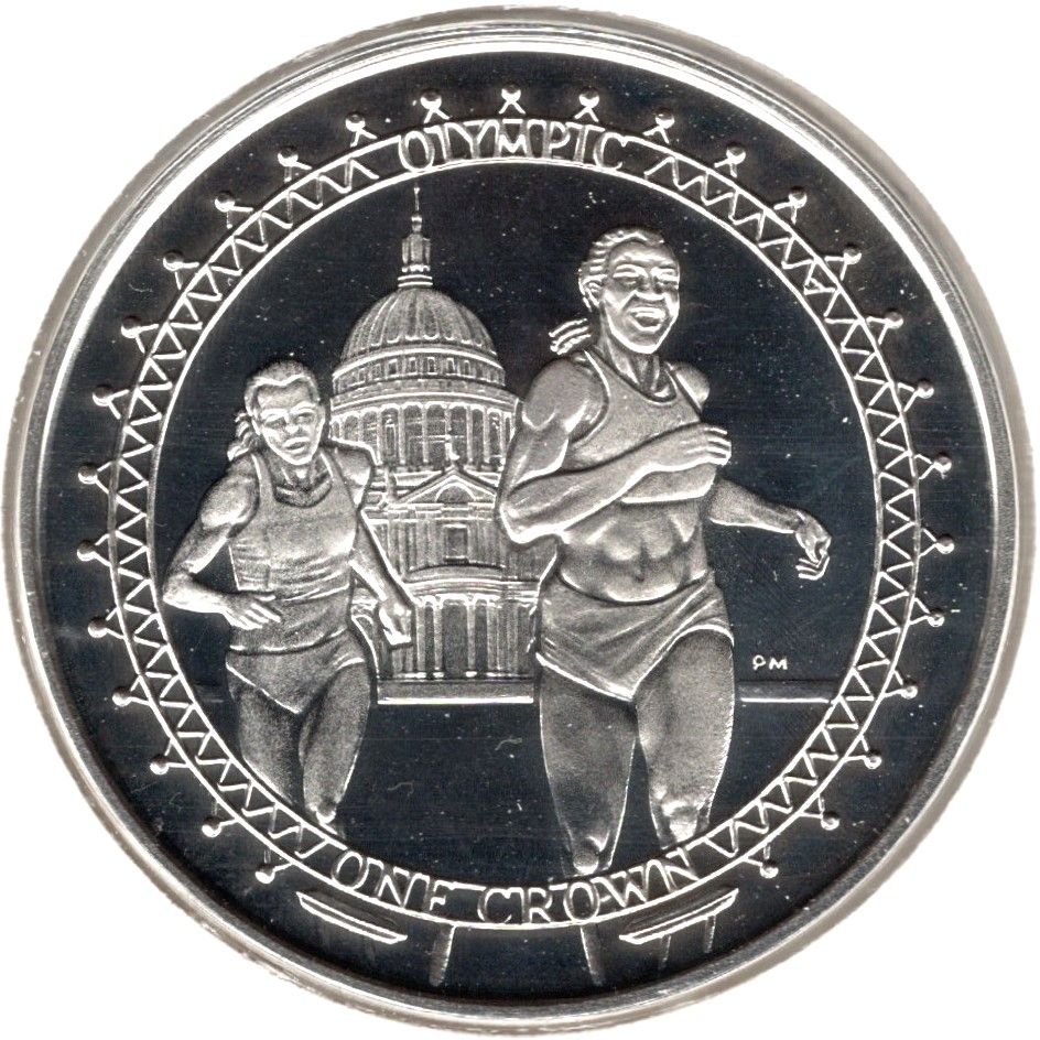 1 крона — Єлизавета II (Олімпійські ігри в Лондоні 2012 — біг; срібна монета) 2012 – 2012 Острів Мен