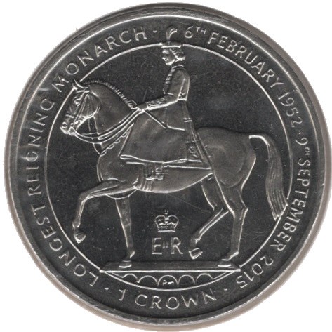 1 крона — Єлизавета II (монарх з найдовшим терміном правління) 2015 – 2015 Острів Мен