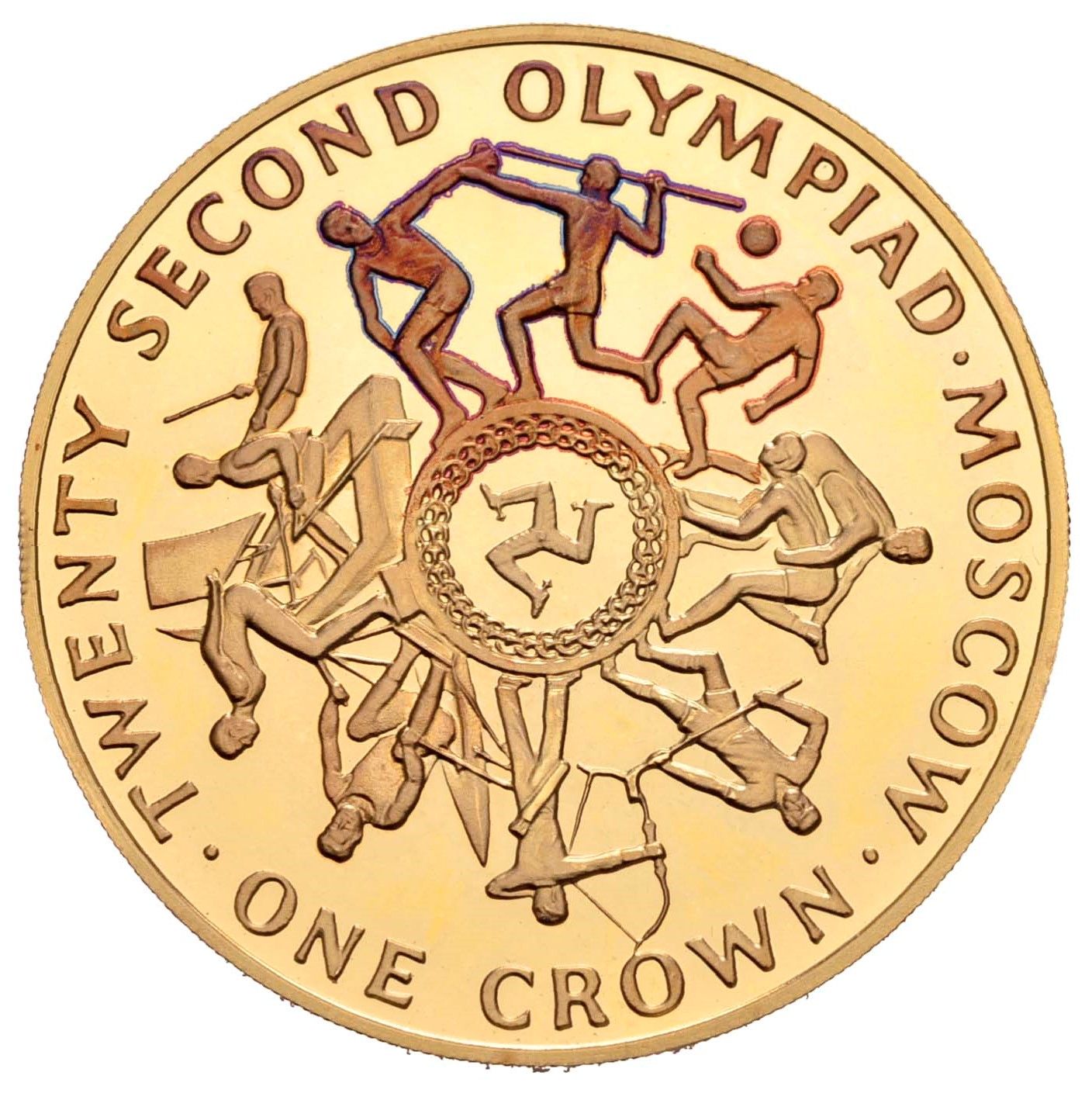 1 крона — Єлизавета II (Олімпійські ігри; золота пробна монета) 1980 – 1980 Острів Мен