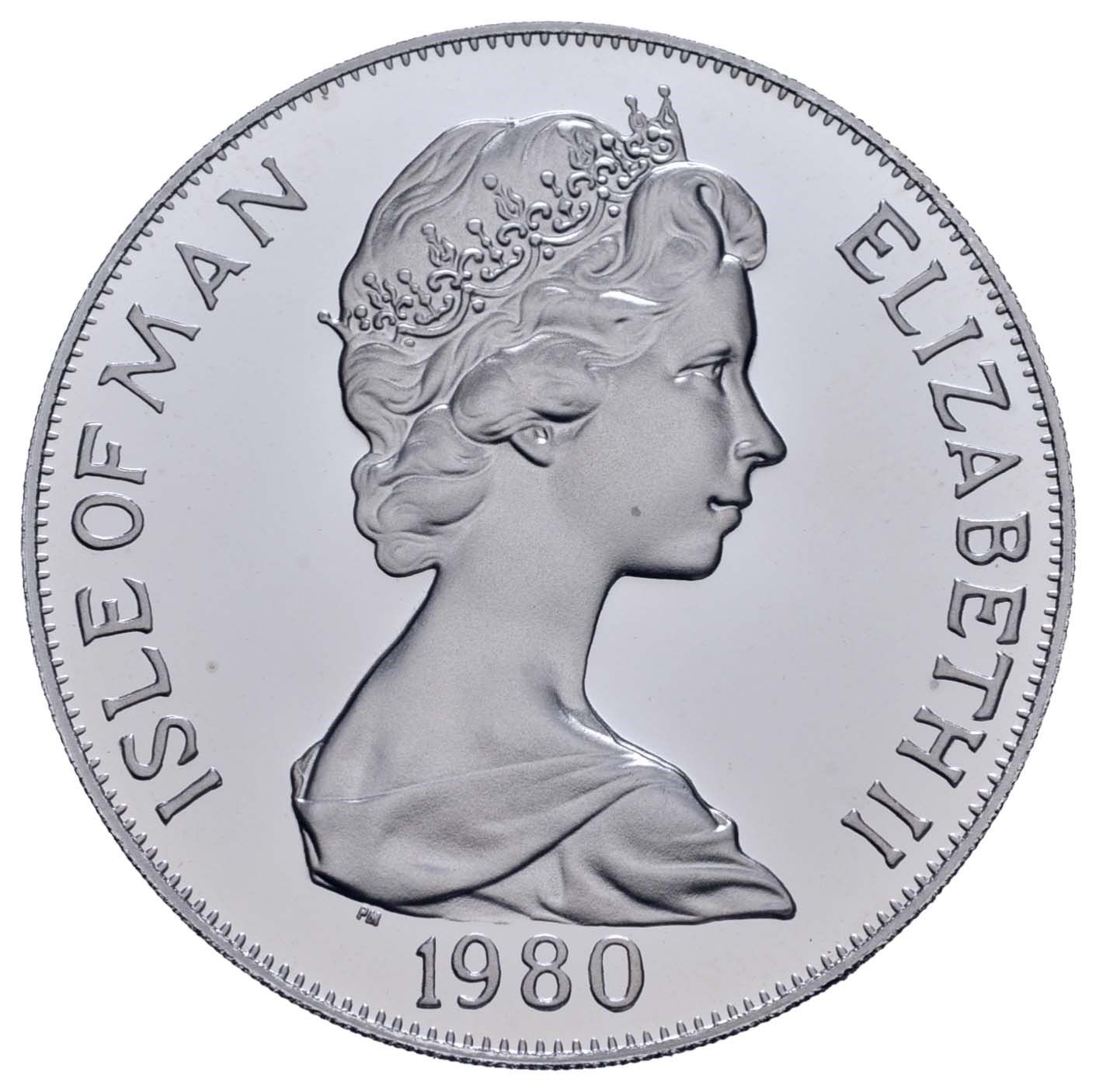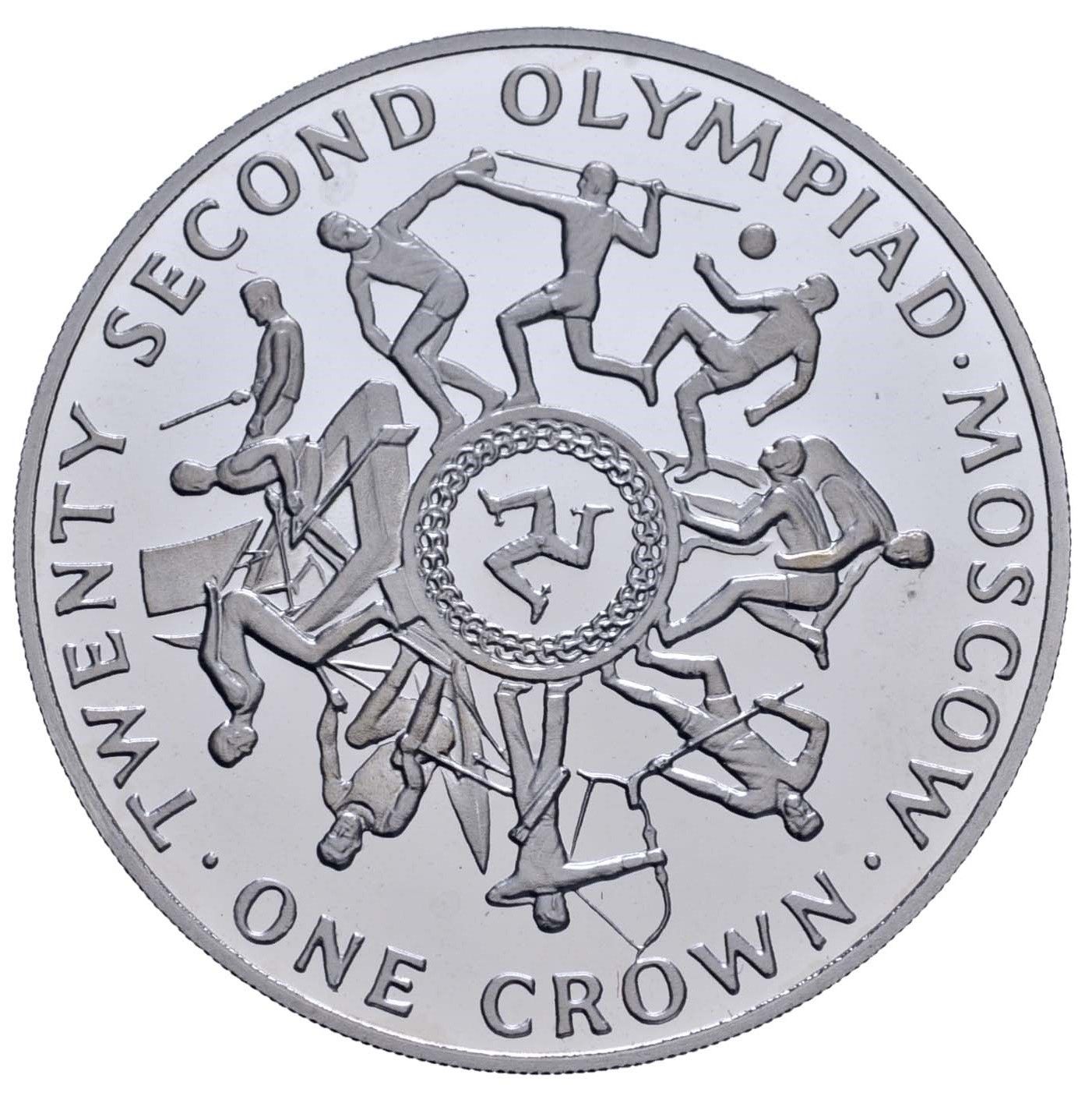 1 крона — Єлизавета II (Олімпійські ігри; платинова проба) 1980 – 1980 Острів Мен