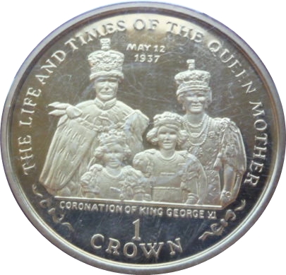1 крона — Єлизавета II (королева-мати — коронація короля Георга VI) 2000 – 2000 Острів Мен