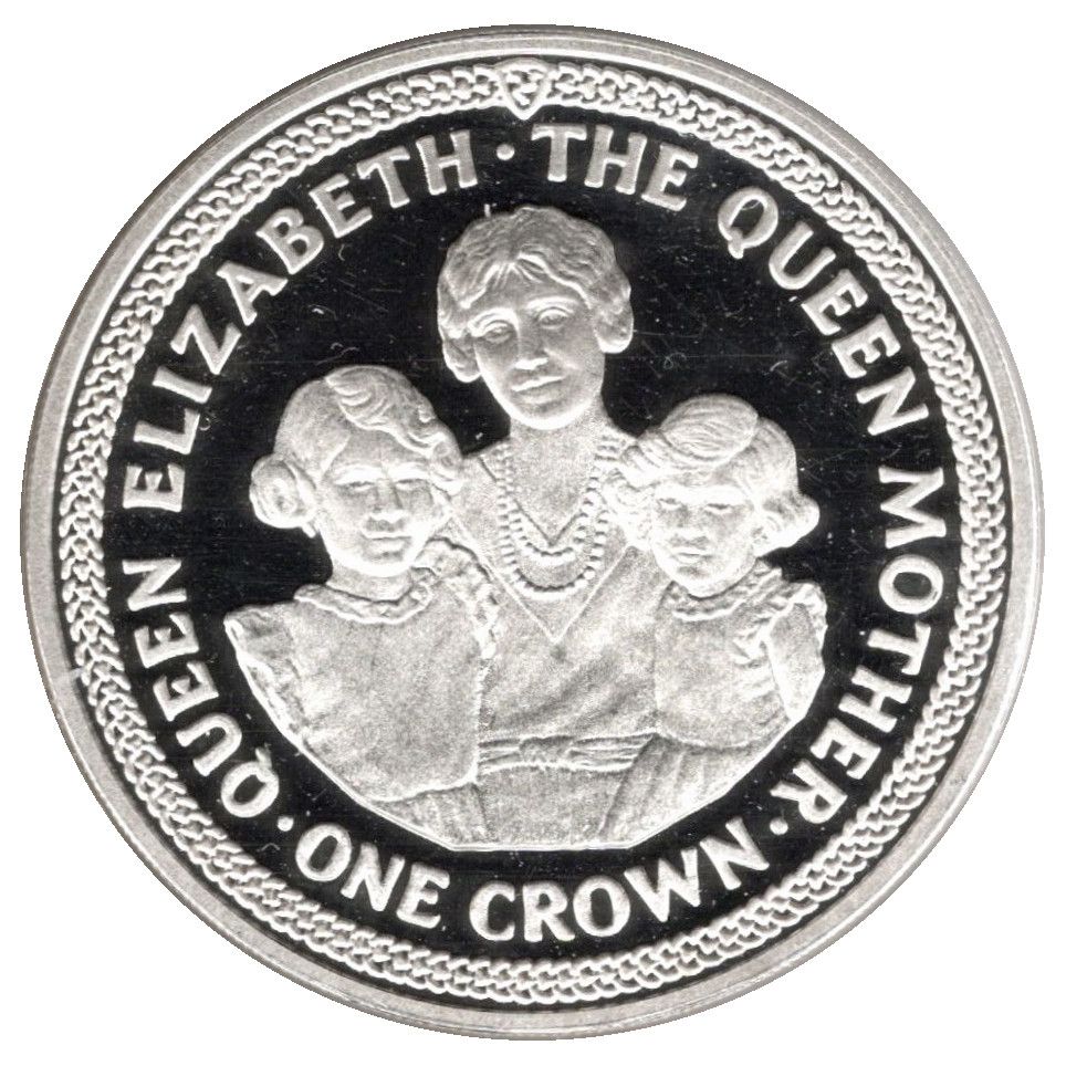 1 крона — Єлизавета II (королева-мати; срібна пробна монета) 1985 – 1990 Острів Мен