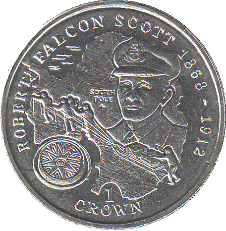 1 крона — Єлизавета II (Роберт Фалькон Скотт) 1999 – 1999 Острів Мен
