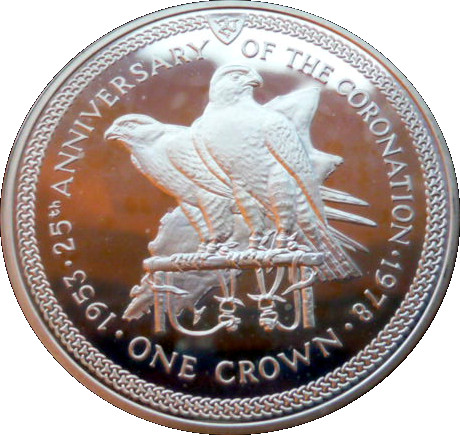 Назва: 1 крона — Єлизавета II (Срібний ювілей, срібна пробна монета)