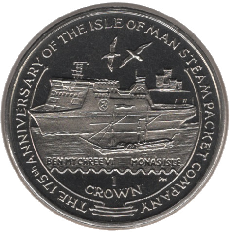 1 крона — Єлизавета II (Пароплав — Бен Май Чрі VI Острів Мони) 2005 – 2005 Острів Мен