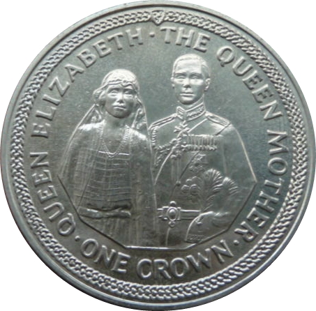 1 крона — Єлизавета II (весілля королеви-матері та герцога Йоркського) 1985 – 1985 Острів Мен