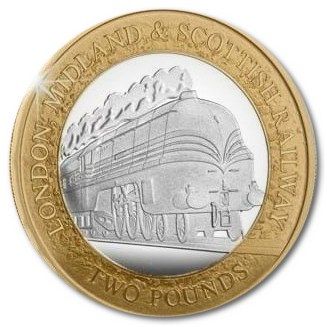 Опис: У центральному колі зображено LMS «Дючеса Гамільтона», збережений паровоз, побудований у 1938 році та виставлений у Національному залізничному музеї. У верхній частині розміщено напис LONDON, MIDLAND & SCOTTISH RAILWAY, а в нижній — номінал монети.