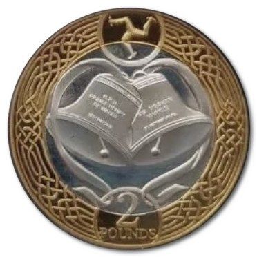 Опис: Два дзвони, на яких вигравірувані офіційні імена подружжя, герб острова Мен у верхній частині.