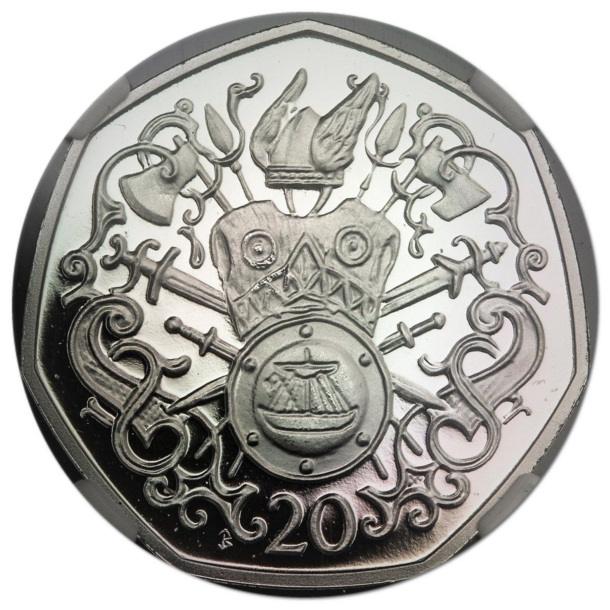 Назва: 20 пенсів — Єлизавета II (зброя та обладунки вікінгів; платина)