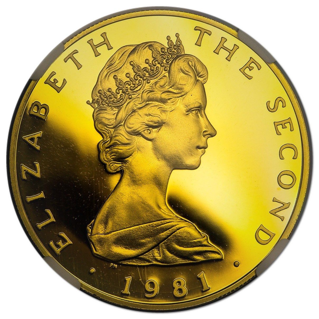 5 фунтів — Єлизавета II (трискеліон на карті; золота проба) 1981 – 1983 Острів Мен