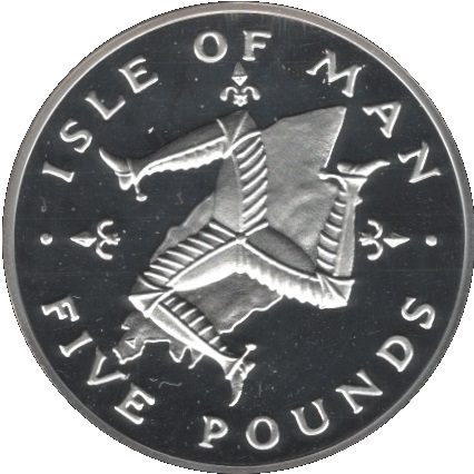 5 фунтів — Єлизавета II (трискеліон на карті; срібло) 1981 – 1983 Острів Мен