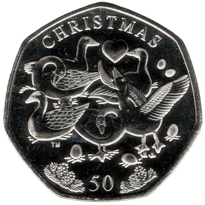 50 пенсів — Карл III (12 днів Різдва — шість гусок, що несуть яйця)