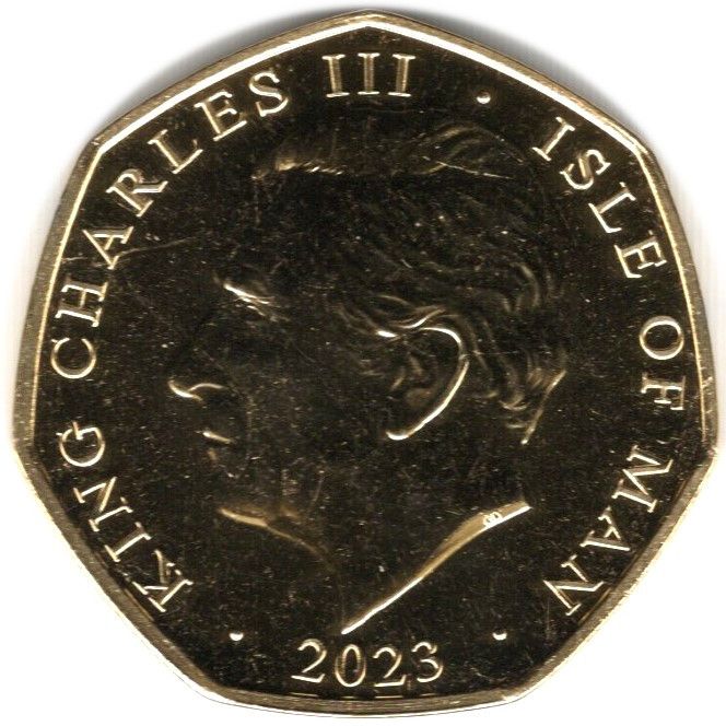 50 пенсів — Карл III (Гімн — «Боже, бережи нашого милостивого короля»; позолочена) 2023 – 2023 Острів Мен