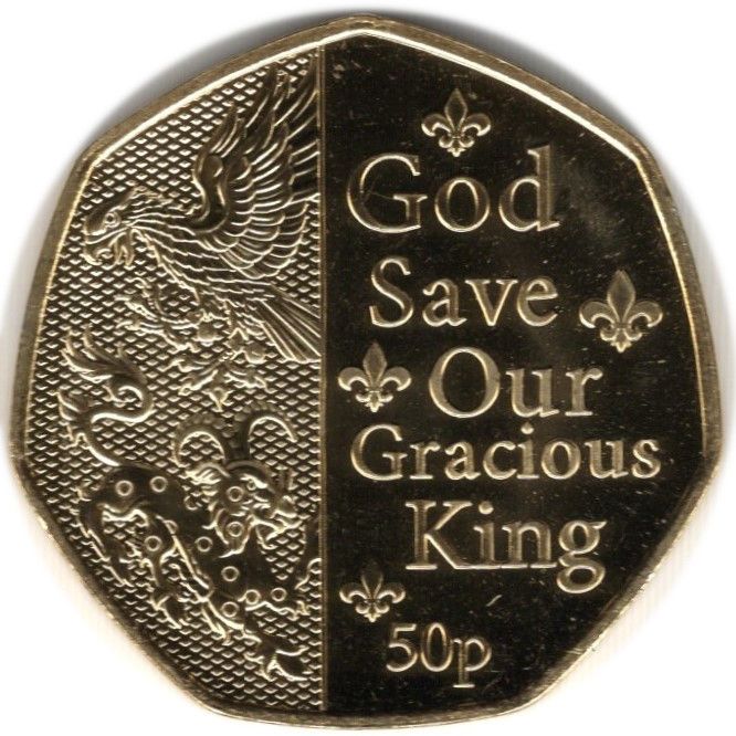Назва: 50 пенсів — Карл III (Гімн — «Боже, бережи нашого милостивого короля»; позолочена)