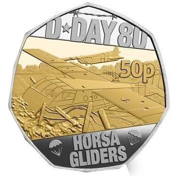 50 пенсів — Карл III (планери D-Day Horsa; срібний пробний з позолотою) 2024 – 2024 Острів Мен