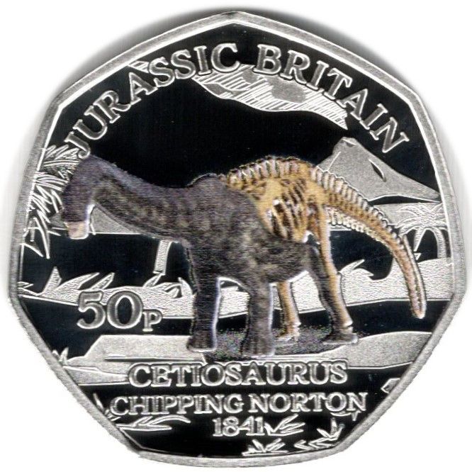 Назва: 50 пенсів — Карл III (Юрський період у Британії — цетіозавр; срібна монета)