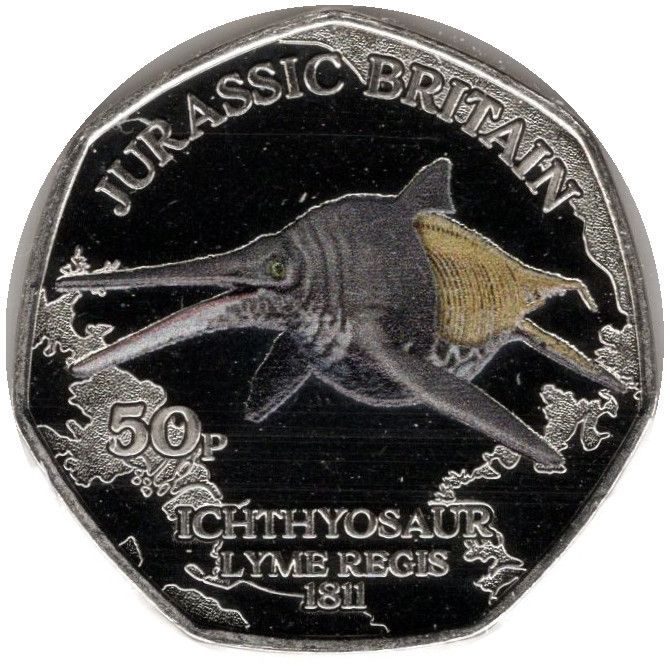 Назва: 50 пенсів — Карл III (Юрська Британія — іхтіозавр; кольорова)