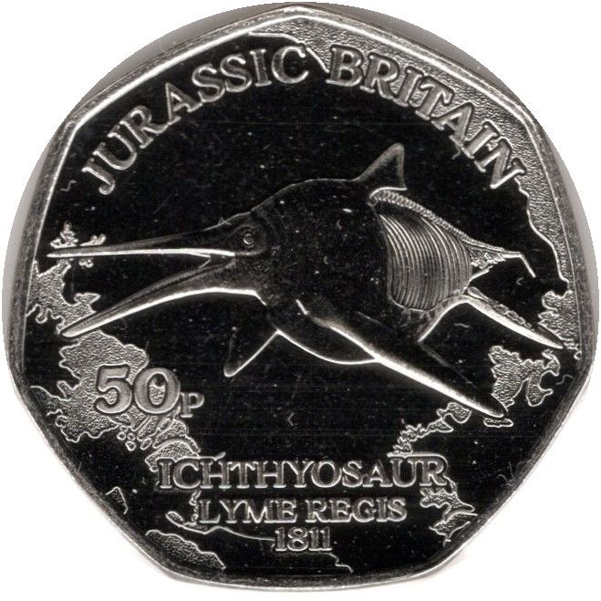 Назва: 50 пенсів — Карл III (Юрська Британія — Іхтіозавр)