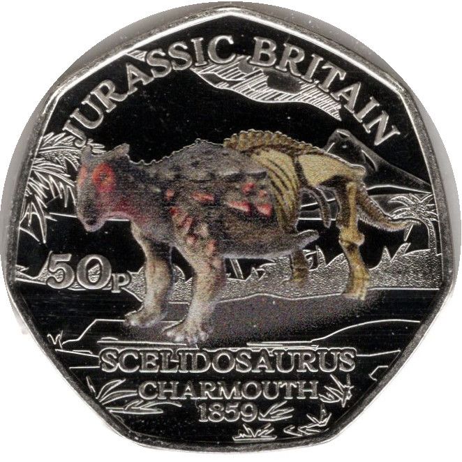 Назва: 50 пенсів — Карл III (Юрський період у Британії — скелідозавр; кольорова)