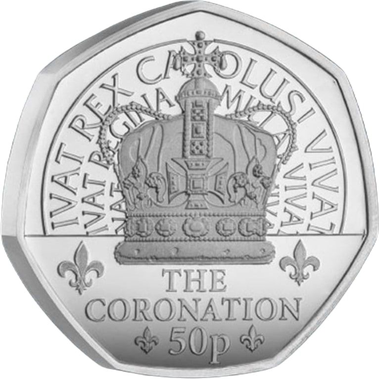 50 пенсів — Карл III (перший рік правління короля — коронація; срібна проба) 2024 – 2024 Острів Мен