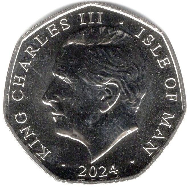 50 пенсів — Карл III (Перший ралі Мен) 2024 – 2024 Острів Мен