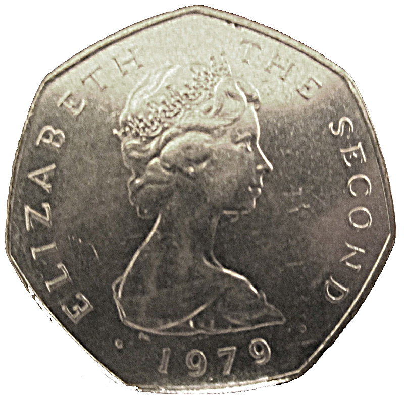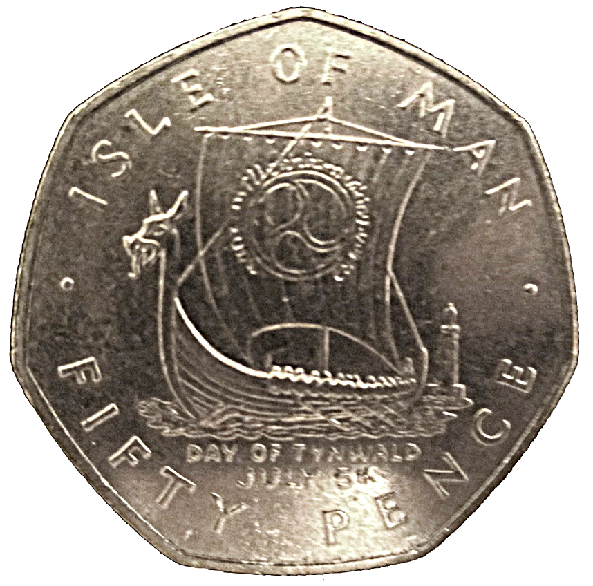 50 пенсів — Єлизавета II (День Тинвальда — візит королеви) 1979 – 1979 Острів Мен