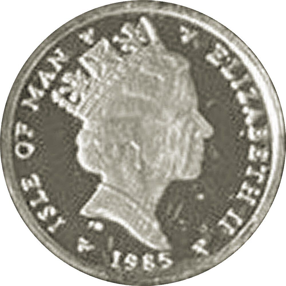 ½ пенні — Єлизавета II (фуксія на щиті; Рік спорту; срібло) 1985 – 1985 Острів Мен
