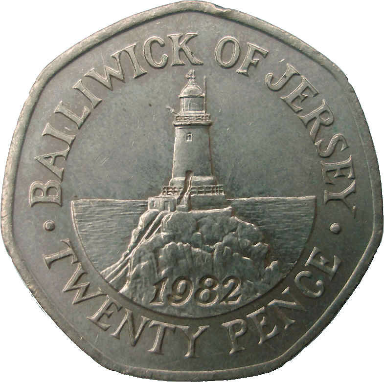 20 пенсів — Єлизавета II (маяк Корб'єр; срібна монета) 1982 – 1982 Джерсі