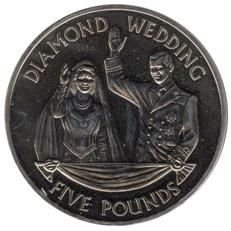 Назва: 5 фунтів — Єлизавета II (Діамантове весілля — Єлизавета та Філіп 1947)