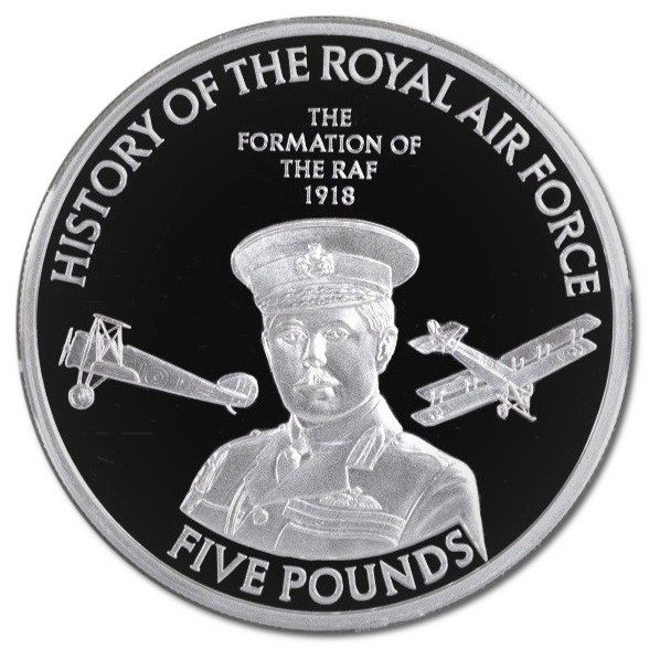 5 фунтів — Єлизавета II (Створення Королівських повітряних сил; срібна пробна монета)